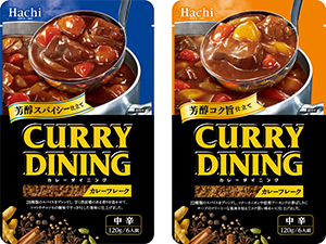 【関西】ハチ食品は、カレールウ(フレークタイプ)の新シリーズ『CURRY DINING(カレーダイニング)』として、「芳醇コク旨仕立て」(写真(右))と「芳醇スパイシー仕立て」(同(左))を22日に発売した。 同商品のコンセプトは「いつもの食卓で芳醇なコク深さとスパイス感が味わえる本格カレー」とし、いずれも20種類以上のスパイスを使用。うまみとコクやスパイス感を際立たせた。 また、昨今の家族構成の変化で、家庭で作るカレーの