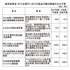 環太平洋経済連携協定(TPP)や日・EU経済連携協定(EPA)の先行きの不透明感は増すばかりだが、日本の食品産業は国際化する市場での競争を余儀なくされる。農林水産省は農林水産物・食品の海外展開を予算化し、中小企業を所管する経済産業省、食品衛生を所管する厚生労働省も国際化への対応、国内産業の体質強化を政府が昨年12月22日にまとめた2017年度予算案へ盛り込んだ。 (伊藤哲朗)