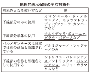 日本と欧州連合(EU)の経済連携協定(EPA)大筋合意を受けて、農林水産省は15日、地理的表示(GI)保護制度について、EUとの合意内容を明らかにした。日本のGI保護制度のなかに欧州の産品などを加える。パルメザンチーズなど真正品との誤認・混同がない限り保護の対象外とするなど日本の流通実態などを配慮した(表)。反対に日本の三輪素麺、神戸ビーフなどもEU圏内でも保護の対象となる。日EU・EPAの発効時から正式に実施。 GI保護制度の今回の合意はEU側が
