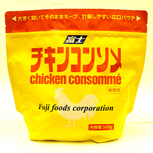 富士食品工業は中華調味料、和風調味料が中心だが、2013年に「洋食房」シリーズを発売し、洋食分野へと業容を拡大していった。今回、あらためてベーシックな粉末スープ「チキンコンソメ」(写真、500g×12、常温)を新発売し、注目を集めている。 「チキンコンソメ」は、洋食のスタンダードな調味料であり、市場は成熟している。その中で同社の「チキンコンソメ」が注目されている理由は、オリジナルパッケージにある。 同社は、厨房のオペレーシ