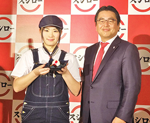 水留浩一社長(右)とスシローカフェ部・村井友梨香部長