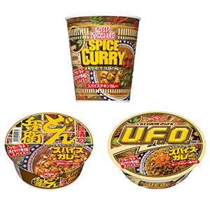 日清食品は21日、大阪発祥で最新トレンドのスパイスカレーを同社の即席麺ブランドでアレンジした新商品を22日の「カレーの日」に合わせて投入する。発売するのは「カップヌードル スパイスチキンカレー」「日清のどん兵衛 カツオとチキンのWだしスパイスカレーうどん」「日清焼そばU.F.O.スパイスキーマカレー焼そば」の3品=写真=。いずれも税抜き希望小売価格180円、全国で販売していく。 「カップヌードル スパイスチキンカレー」は、「カップヌードル」ならでは