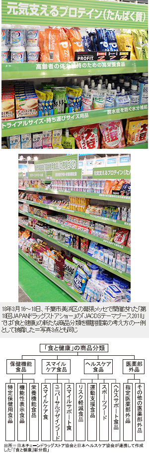 ドラッグストア(DgS)の売上げ規模が拡大の一途をたどっている。数年前までDgSの市場規模が停滞していた時期もあったが、再びコンビニエンスストア(CVS)市場の拡大速度を上回る伸び率で再成長を始めている。日本チェーンドラッグストア協会(JACDS)の発表によれば、食品と調剤が大きなけん引力となっているということだが、DgS業界はさらに食品カテゴリーの戦略的活用を目指して、新たな取組みを本格化させつつある。