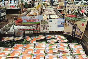 いち早くみやぎ生協で販売されたサーモン(幸町店)