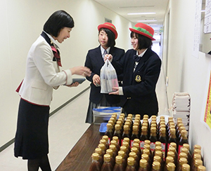 岡山県立岡山東商業高等学校は、地域の特産品である「桃太郎トマト」を使用した調味料を開発し、3月24日に羽田空港JAL生協で生徒が実際に商品を売り込む商談と試食販売を行った。企業の担当者とじかに商談交渉をして開発商品をアピールすることで販売機会を創出し、さらには岡山県の地域活性化を目指している。  同校はこれまで、生徒のアイデアによる商品をメーカーと共同で開発してきた。14年発売の「ももたろうとまとぽんず」に続いて「桃太郎トマトとんかつソース」「桃太郎