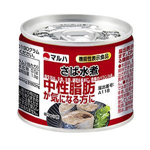 機能性表示食品初の缶詰製品が来春上市される。水産缶詰最大手のマルハニチロがかねて申請していた中性脂肪低下機能の「さば水煮」(写真)がこのほど消費者庁の受理を受け、商品化が決定した。缶詰市場では近年、味覚や品質を追求したこだわり型の惣菜(おかず)缶が新需要を喚起しているが、同品の登場によって「健康」を軸とする新たな市場が創出されるか注目される。 展開予定の「さば水煮」は、中性脂肪を低下させる機能を持つ魚由来の栄養素・DHAとEPAを含有しており、機能