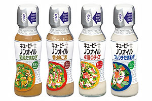 キユーピーは今秋冬、ノンオイルドレッシングの市場活性化に着手する。ロングセラー「青キャップ」シリーズを1日、全面刷新(本紙既報)したのに続き、16日からノンオイルのドレッシングタイプ調味料「銀キャップ」シリーズを強化。新商品「和風たまねぎ」でラインアップを拡充するほか、既存品すべてを改良する。ノンオイルタイプはドレッシング市場で約2割のシェアを持つ一方、近年は成長率が鈍化。トップメーカーのテコ入れでの再活性化に期待がかかる。 ノンオイルドレッシング