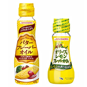 J-オイルミルズは今秋、家庭用フレーバーオイル(風味油)の品揃えを強化する。8月下旬から、人気のレモンフレーバーを商品化した「AJINOMOTO オリーブ&レモンフレーバーオイル」(写真(右))と、簡単にバター風味を付与できる「同 バターフレーバーオイル」(同(左))を全国で発売。風味油は風味付けとしてのニーズが高まっている食用油市場で有望ジャンルとなる可能性が高く、反響を得そうだ。 同社によると食用油に対する意識は変化しており、従来の「揚げる」「