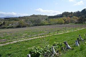 ブドウ栽培を始めた「サントネージュ・ニッカ・余市ヴィンヤード」。今後、約1万本を植樹していく