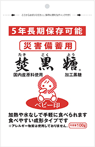 【関西】上野砂糖は、5年間長期保存可能な「災害備蓄用焚黒糖」(写真)を発売し、災害食市場に参入した。成形型一口タイプで、加熱や水なしで手軽にエネルギー補給できるメリットがある。高カロリーで、腐敗の心配がなく長期保存が可能、アレルギー発症がない砂糖ならではの特性を生かした商品。 黒糖をメーンに展開する同社は、サトウキビを搾って煮詰めた黒糖に原料糖を溶かして作る加工黒糖を「焚黒糖」の商標で販売している。長年培ってきた原料調達力と加工技術、高度品質管理体