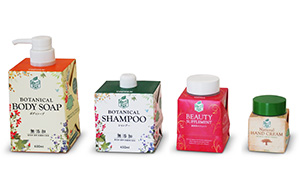世界規模で環境配慮や省資源化推進の機運が高まる中、凸版印刷はプラスチックからの代替が可能な紙パック「キューブパック」を開発した。口栓を天面中央部に設けたことで、ポンプ式や口広容器などさまざまな形状に対応する。プラ容器と同等の耐水性があり、キッチンをはじめ洗面所やバスルームなど、ぬれた場所でも常時使用できる。食品やトイレタリー業界に向け、2月からサンプル出荷を開始した。 キューブパックはプラボトルからの代替が可能な新しい紙パック。一般的な紙パックと違