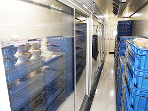 惣菜などもケース背面のウオークイン冷蔵庫から補充でき、陳列作業が大幅に軽減