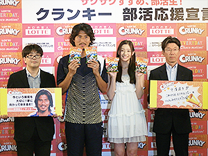 ロッテは6月26日、ベースボール・マガジン社とのコラボ商品「クランキー〈部活パック〉」発売記念イベントを都内のイベントスペースで開催した。イベントには、横浜F・マリノス所属のプロサッカー・中澤佑二選手と週刊サッカーマガジン・北條聡編集長、タレントの足立梨花が登場した。中澤選手は商品にも掲載されたメッセージ“今という瞬間を大切に!夢に向かって突き進め”を披露した上で全国の部活生を「目標に向かって突き進めば夢はかなう。クランキーを食べて部活に汗を流してください」と激励した。
