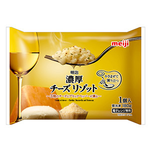 明治は16年度春夏の市販冷凍食品新商品6品、リニューアル商品5品を1月下旬から順次全国発売する。新商品は、昨年度発売した「デザート・ピッツァ」シリーズから、ココアを練り込んだ特製生地でよりデザートとして楽しめる「デザート・ピッツァ バナナチョコクッキー」=写真(上)、「同ストロベリーチョコ」を、またスプーンでかきまぜることで香りが立つリゾット「明治 濃厚チーズリゾット」=写真(下)=と「明治 野菜たっぷりトマトリゾット」を発売。また、リニューアル商品は銀座シリーズから、ピラ