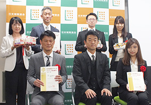 倉内伸幸日本雑穀協会会長(前列中央)と受賞企業関係者