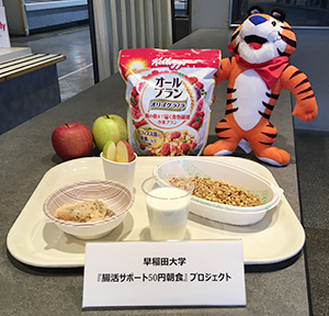 日本ケロッグは12日、学生の朝食摂取の習慣化と健康サポートを目的に、早稲田大学「腸活サポート50円朝食」プロジェクトを展開し、食物繊維が豊富なシリアル「オールブラン ブランフレーク プレーン」「オールブラン オリゴグラノラ」「オールブラン 香ばしナッツ」の3製品の提供を開始した。プロジェクト期間中は、在学生であれば50円で朝食の提供が受けられる。 若い世代で、より不足傾向にある食物繊維の摂取量だが、食物繊維が豊富な食生活は、腸内環境のバランスをより