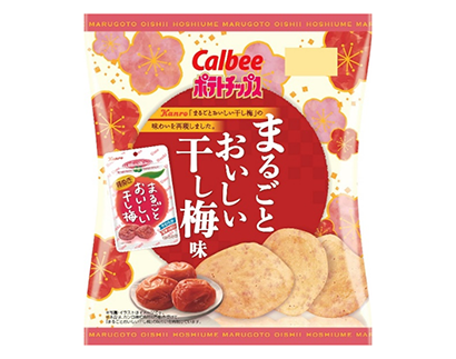 カルビーとカンロ、コラボ商品「ポテトチップス まるごとおいしい干し梅味」発売