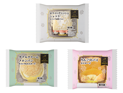 山崎製パンは、チルドタイプの菓子パンカテゴリーで、新ブランド「パンSWEETS」を立ち上げた。「ダブルクリームメロンパン」「ホワイトデニッシュショコラ(ホイップ&苺ジャム)」「りんごのパイ(カスタード)」=写真=の3品を1日から全国新発売した。 「パンSWEETS」は、「おうちで楽しむ、ちょっとした贅沢(ぜいたく)」がコンセプト。 コロナ禍で、スーパーなどで販売するチルドデザートの需要は拡大している。同社の強みを生かした、パンと