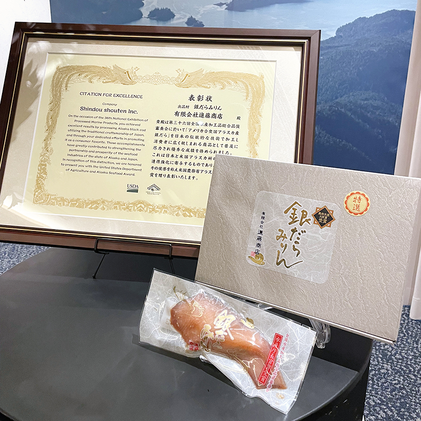 同賞を受賞した進藤商店の進藤光代社長は「当社は長年、アラスカ産銀ダラの品質は世界一だと