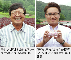 北海道洞爺町にあるピュアフーズとうやは生産、加工、販売までを行う6次産業化を進め、赤シソを使ったシソジュースなど地元産にこだわった商品作りが注目されている。 同社は1983年に本来捨てられるものを加工して食べることを目的に「洞爺村つけもの研究会」を設立、2000年には農業所得の向上や持続性を考え法人化した。 洞爺の赤シソは道内90%を占める産地で、収穫は機械を使うのが一般的だが、シソのおいしさを生かすため手作業で摘み取り収
