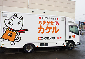 【北海道】コープさっぽろは11日、札幌市の南区エリアを巡回する移動販売車「おまかせ便カケル」の運行を始めた。札幌市内では西区、手稲区に続き累計4台目。 同生協は高齢化や過疎化が進む地方を中心に食料品や生活必需品を届ける移動型スーパーとして全道126市町村に87台を導入。販売商品は約1000種類の品目で決まった曜日、時間に巡回運航している。 今回は札幌市の中で南区が最も高齢者率が高いエリアとして買い物難民からの要望が多く導入