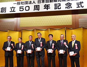 日本自動販売機工業会は7日、東京・港区の品川プリンスホテルで創立50周年式典を行った。冒頭、主催者を代表して尾上広和会長(グローリー社長)は「10年ひと昔を5回繰り返し、自販機の省エネ対策、酒・タバコの未成年対策などいろいろな問題に直面し、取り組んできた。現状に満足していないが、CVSや量販店との競合で自販機の役割が低下しているとの声もある。自販機のネットワーク化、物を売るだけでなく情報発信する街角ステーションとして地域に貢献する役割を担う。“自販機があって良かった”から“