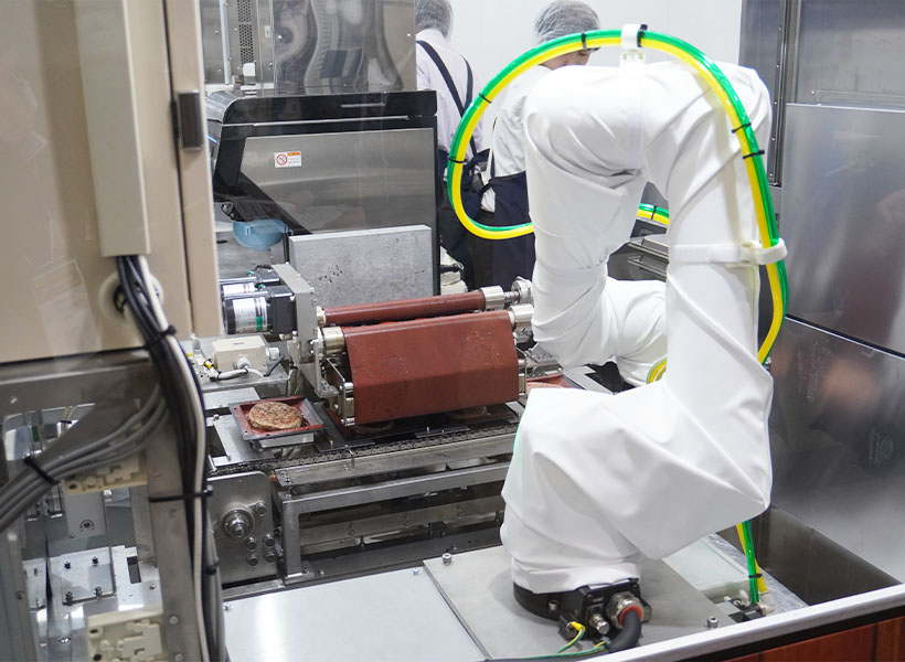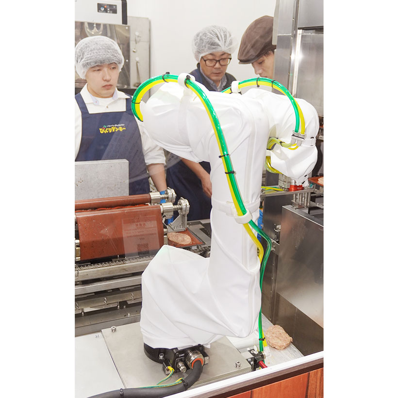 ハンバーグレストラン「びっくりドンキー」を展開するアレフは昨年12月5日、幕張メッセで開催されたBtoB向け展示会で、次世代型のハンバーグ提供システムを初公開した。今回の出展は店舗展開や販売を前提としたものではなく、あくまで研究開発の成果を実証・検証する場として位置付けられている。取材には、アレフ管理本部広報担当の渡邊大介氏と、経営企画本部研究開発チームリーダーの渋谷剛氏が応じた。