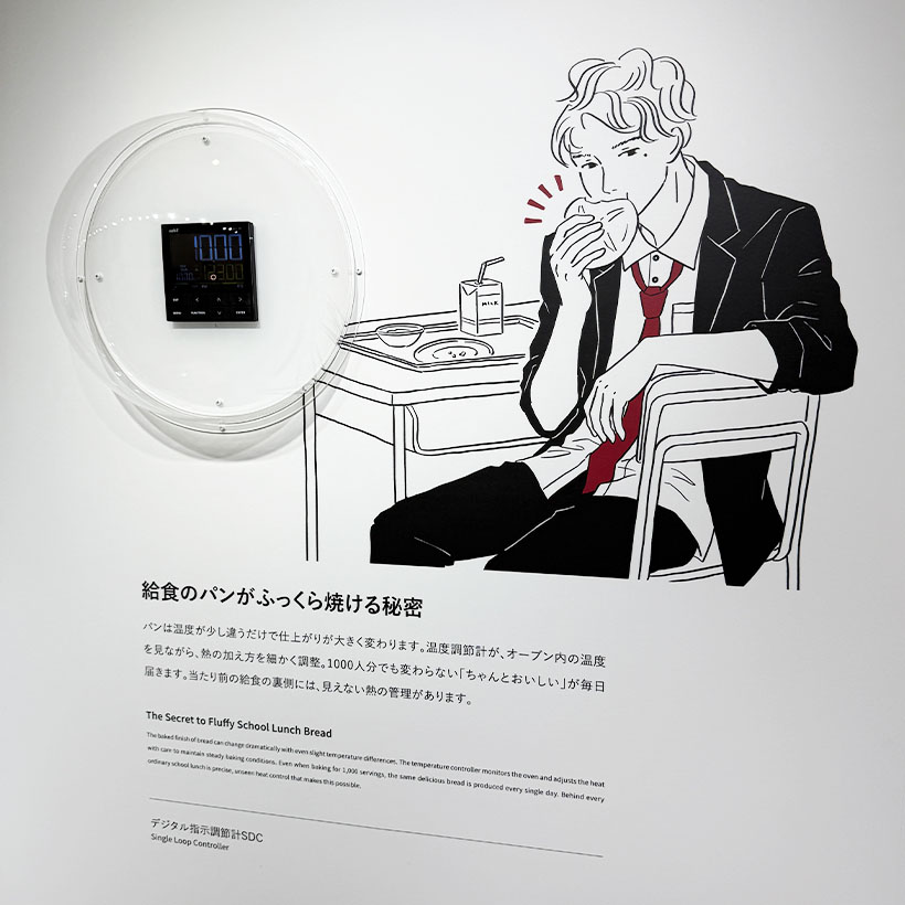 給食のパンがふっくら焼ける秘密(製品=デジタル指示調節計SDC/パンの焼成を温度調設計がオーブン内の温度を見ながら熱の加え方を調整する)