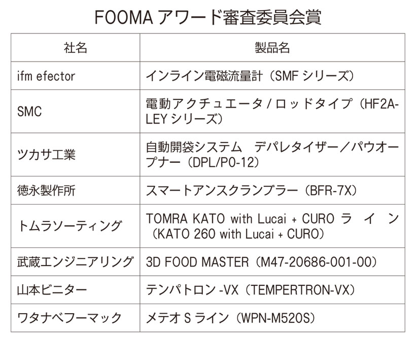 日本食品機械工業会が主催する「FOOMAアワード」は、食品機械分野における技術研究・開発の促進と、その成果の普及を目的に2022年に創設された。生産性向上や省力化、食品安全の高度化、新たな食品開発への貢献を通じ、食文化の発展を支えることを狙いとしている。2025年に実施された第4回FOOMAアワードでは、現場課題を的確にとらえた高度な技術が高く評価された。最優秀賞および優秀賞の受賞製品をあらためて紹介し、その