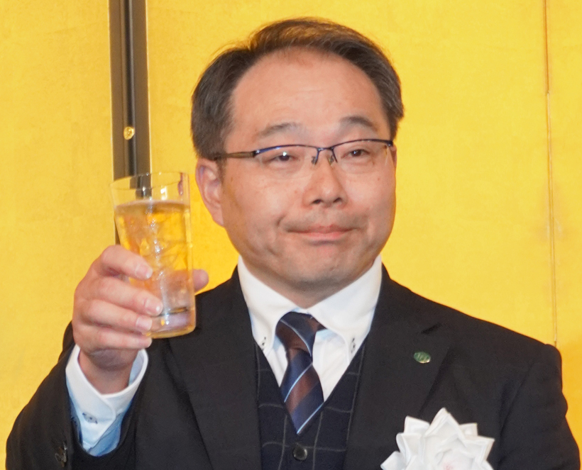乾杯の杯を挙げる高瀬裕二日本包装リース社長
