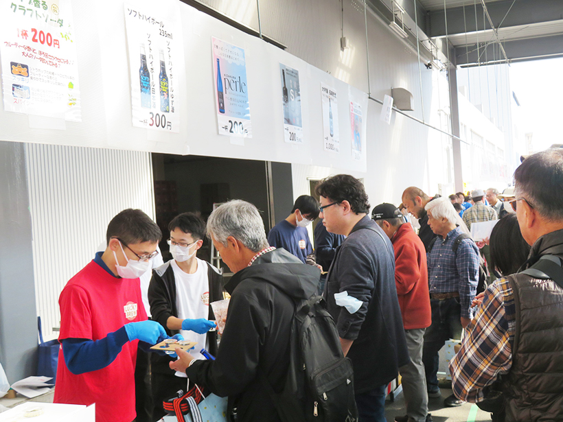 日本酒をはじめクラフトビールやハイボールなど、黄桜のお酒を楽しむ人らでにぎわった