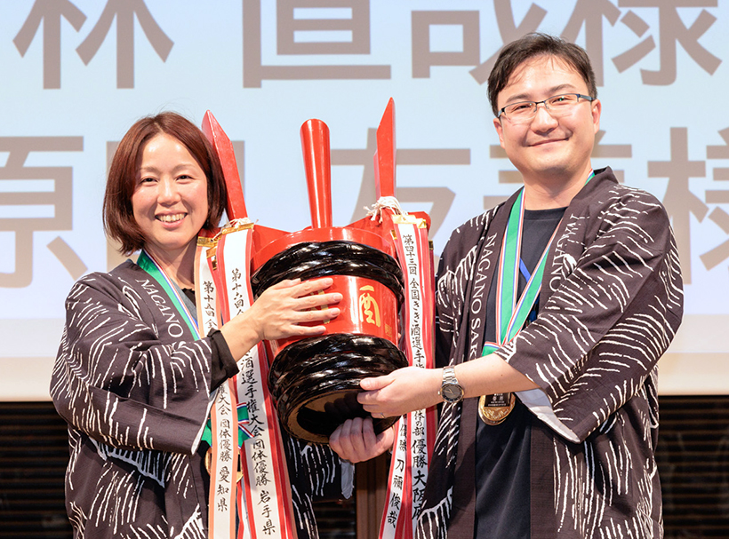 団体の部優勝の長野県・原田友美さん(左)と林直哉さん