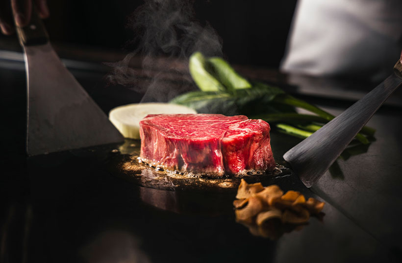 目の前で焼き上げる鉄板焼の臨場感が楽しめる