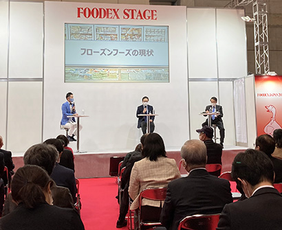 FOODEX JAPAN2021(3月9~12日開催)内で開催されたセミナー「フローズンフーズがもたらす小売ビジネスの変革」=写真=において、コロナ禍で価値が急上昇した冷凍食品は国内消費にとどまらず、海外への輸出にも期待感が示された。 セミナーでは、七尾宣靖・イオンリテール執行役員食品本部長と小野瀬卓・三菱食品常務執行役員営業統括代行兼低温事業本部長がパネリスト、西川剛史・ベフロティ社長がファシリテーターを務めた。七尾氏はコロナ禍で苦戦を強いられて