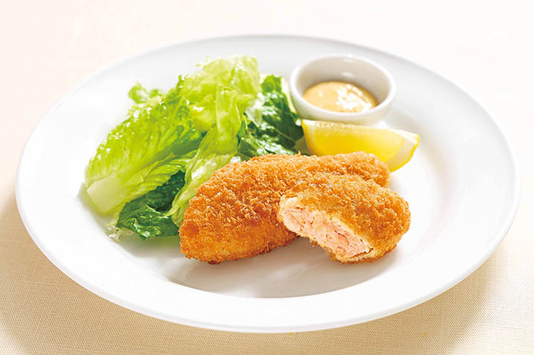 業務用冷食メーカーの大冷は2月から、春夏の新商品5品・リニューアル1品の計6品を発売した。内訳は外食向け2品、シニア施設・病院向け2品、惣菜向け1品、弁当・惣菜向け1品。 今回のイチ押しは、外食向けの「楽らく骨なし助宗だらダイスカット(打粉付)15」。骨を取った魚をブロック状に加工して打ち粉をまぶした「ダイスカット」シリーズに、タンパク質が豊富なスケソウダラを追加した。形状は約30×30×15mmで揃えており、部位別の差異はない。ビュッフェスタイル