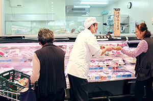 商品特徴をスタッフが店内説明して市場のようなにぎわいを出した