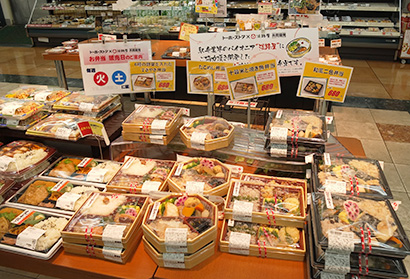 【関西】兵庫県南部で地域密着型食品スーパーを36店舗展開するトーホーストア(TS)は、コロナ禍で主要消費者とのパイプが細くなった地元企業2社とコラボし、地元色を発揮した商品展開と社会貢献活動をリンクさせる地域密着戦略を進めている。駅弁中心に弁当製造・販売を手掛ける1903年創業の「淡路屋」と“規格外”の野菜も目利きするタベモノガタリの「八百屋のタケシタ」で、2社ともスーパーとの協業は今回が初となる。(深瀬雅代)