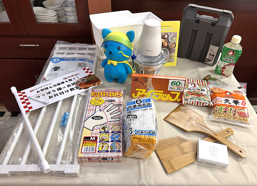 【関西】オタフクソースは17日、「年末のお片付け」をテーマに大阪府内の住環雑貨企業ら6社とのコラボイベントを市内のオタフクソース研修センターで開催。「年末の時期に役立つ知恵を持ち帰ってほしい」と各社が自慢の商品で片付け術を参加者らに伝授した。 異業種コラボイベントは同社と平安伸銅工業が企画し、「お部屋も冷蔵庫も整う!つっぱり棒×お好み焼でお片付け体験教室」に賛同する企業をXで募り、7社コラボが実現した。 オタフクソースは白