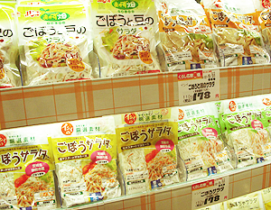 賞味期限30~60日、要冷および冷暗所管理で主にチルド売場で売られている袋物惣菜の「チルド包装惣菜」は震災後に需要が伸び始め、富士経済調べによると2013年には763億円市場となり、5年前に比べると33%増、12年は11%増、13年は7%増が見込まれる急成長市場である。1食分食べ切りサイズの便利さと手ごろな価格設定で単身者のハートをつかみ、メニューが多様化してきた昨今はシニア層も取り込んで勢いに弾みをつけている。