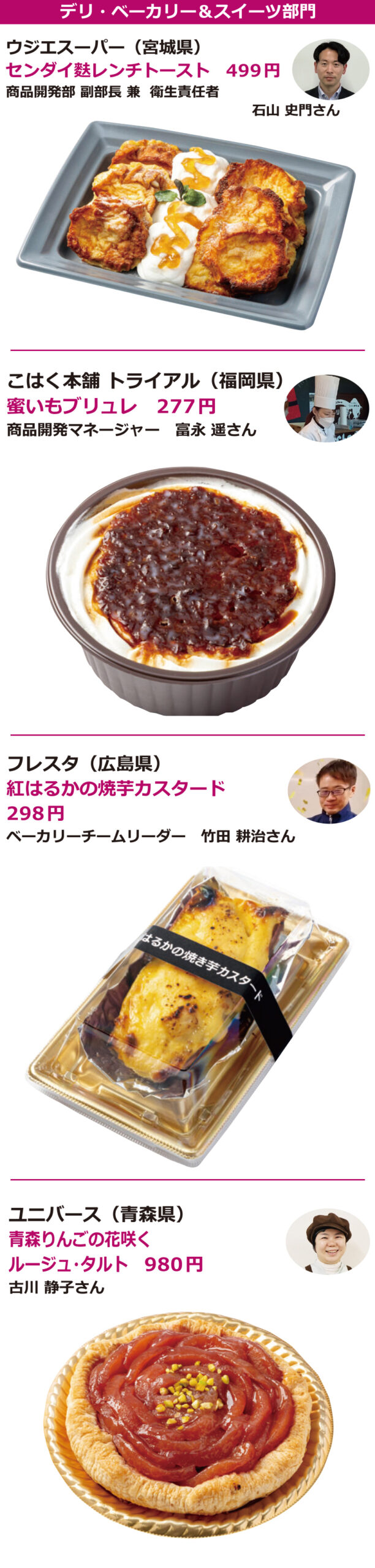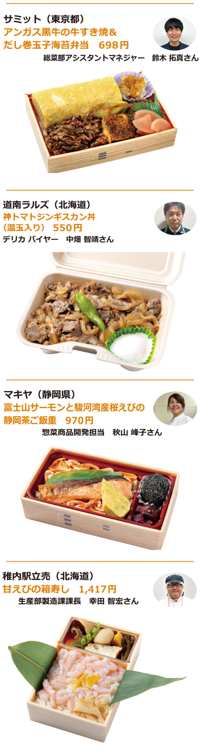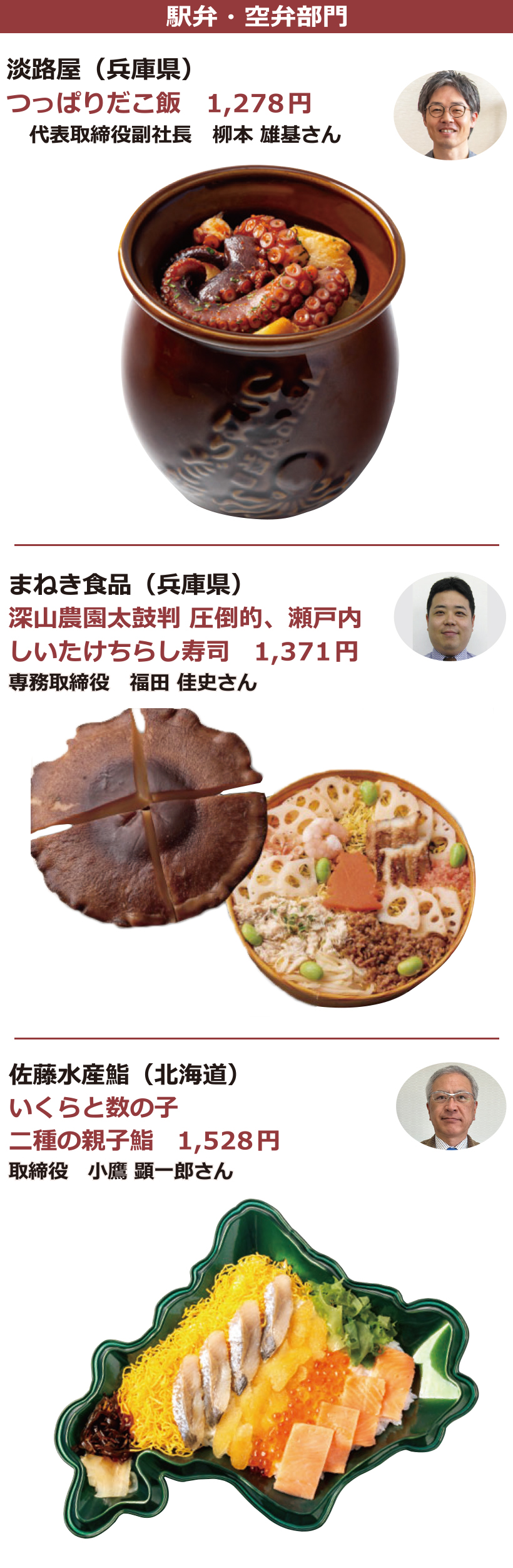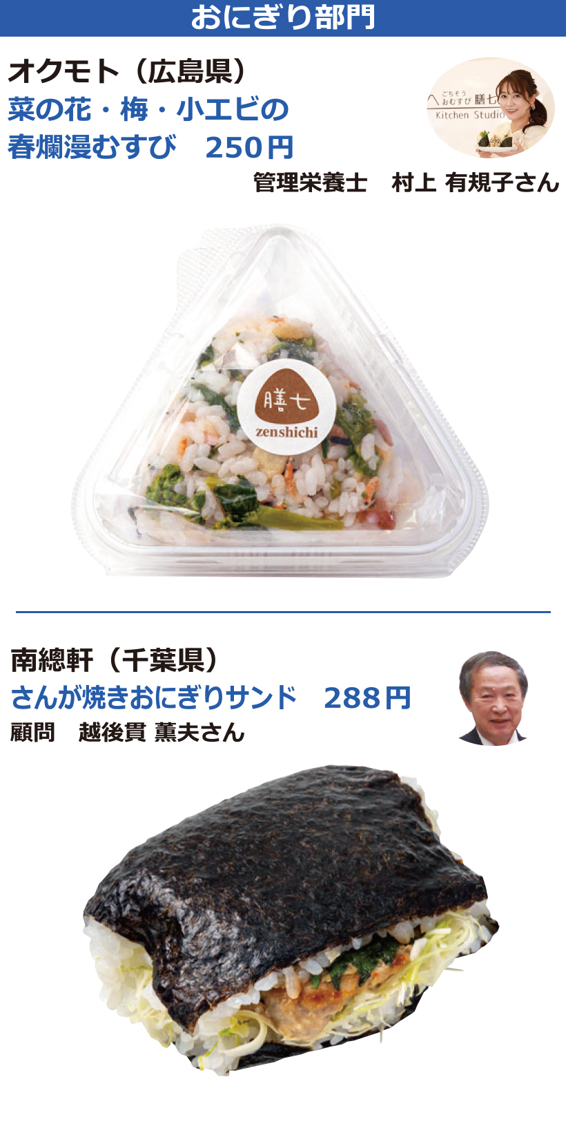 日本食糧新聞社主催、日本惣菜協会、日本べんとう振興協会、惣菜サミット、日本鉄道構内営業中央会後援の第17回「惣菜・べんとうグランプリ2026」では、応募商品1321品から、10部門で最高金賞1品、金賞31品、優秀賞50品、奨励賞20品、審査委員特別賞10品、入賞68品を選定。なお、デリカ総合大賞1社にはこはく本舗トライアル(福岡県)が選定された。オリジナリティー・商品コンセプト・満足度・ビジュアル(容器を含む)・部門テーマについて厳正に審査した。最高金賞、金賞商品(価格は税別