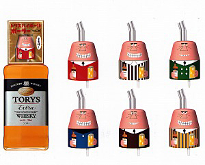 期間中、「サントリーウイスキー トリス〈エクストラ〉」(700ml瓶)=写真左端=1本につき「トリスハイボールポーラー」を1個オンパックする。ポーラーは、アンクルトリスのオリジナルデザイン(全6種)=同左端を除く6個=で、“トリスハイボール”を作る際に楽しい気分を演出する。あわせて同日から「トリスハイボール缶(350ml)」花見4缶パックを限定発売するとともに、「トリス〈エクストラ〉ジャンボPETボトル」(1920ml)を新発売、「トリスハイボール缶」ロング缶(500ml)の販売チャネルも拡大する。
