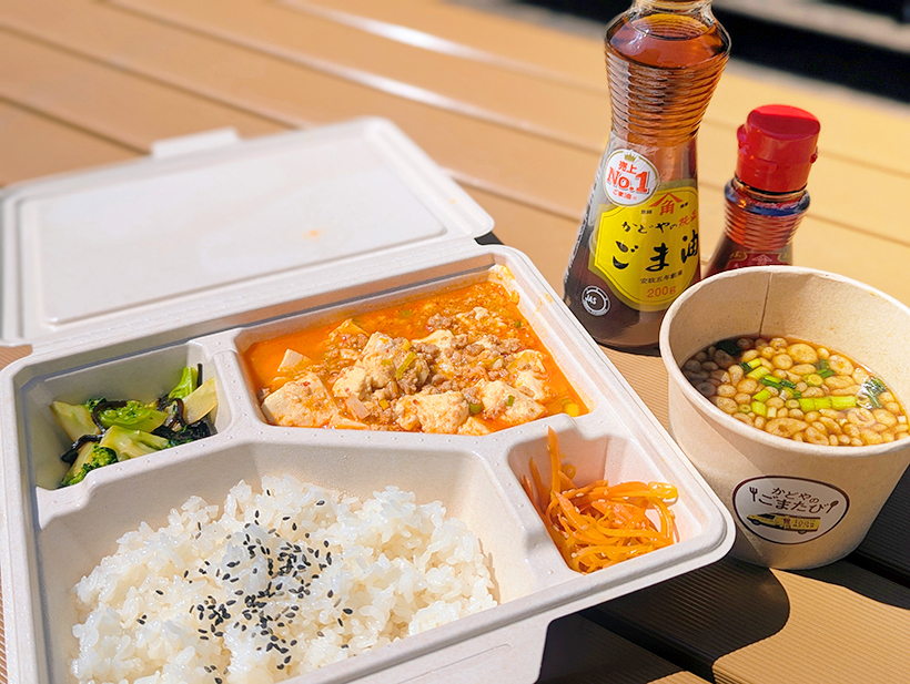 愛知県では3月27~28日、名古屋市中区のサカエヒロバスにキッチンカーが登場した。同社社員のアイデアを集結した弁当「究極の純正ごま油BOX」と