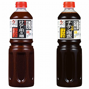 【中国】オタフクソースは、全国各地の食を楽しめる業務用ご当地調味料シリーズに新たに2品を加え、1日から販売を開始した。 新たにシリーズに加わったのは「汁なし坦々麺のたれ」と「チキン南蛮のたれ」=写真(左)、(右)=で、「汁なし坦々麺のたれ1150g」は、独特の風味と辛味が特徴の「花山椒」と「山椒油」を使用しており、汁なし坦々麺独特の舌がしびれるような辛味を再現している。この「汁なし坦々麺」は、もともとは中国・四川のメニューだが、現在は広島市内の30