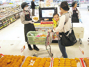 試食販売では多くの買い物客が興味を示した(イオン広島府中店)