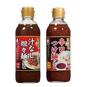 広島辛口つけ麺のたれ(右)と広島汁なし坦々麺のたれ