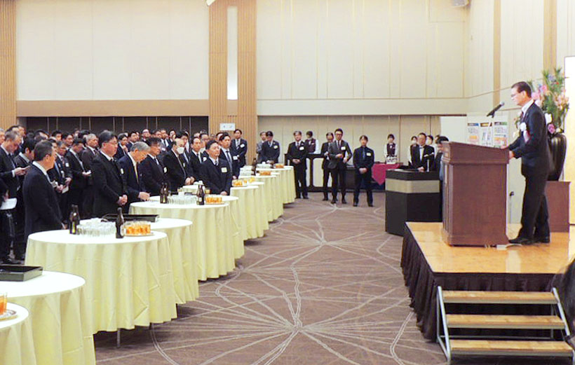 ●製配販3層480人参集 【中国】日本食糧新聞社関西支社と中国支局は9日、広島市南区のホテルグランヴィア広島で「2026年中国地区食品業界賀詞交歓会」=写真=を開催し、中国地方で展開する製配販3層の235社約480人が参集した。 主催者を代表してあいさつに立った杉田尚日本食糧新聞社社長は「この対面で笑顔の見える賀詞交歓会は、場所を福山から広島に移し、記念すべき第1回の開催を迎えることとなった。この会合が明日につながる情報共