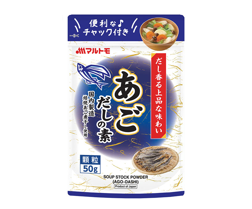 【中国】鰹節・だしと、海洋資源を通じて健康と食文化の発展に貢献するマルトモは、チャック付きのスタンドタイプで保管にも便利なだしの素3品を3月1日から新発売する。 新発売されるのは「かつおだしの素」=写真=「あごだしの素」「いりこだしの素」の3品。「かつおだしの素」は、だしの素専用の香り高い鰹節とコクの強い宗田鰹節をブレンドしており、「あごだしの素」と「いりこだしの素」には、それぞれ自社工場で焙焼加工したあご煮干しといわし煮干しを使用するなど、鰹節屋