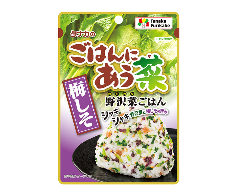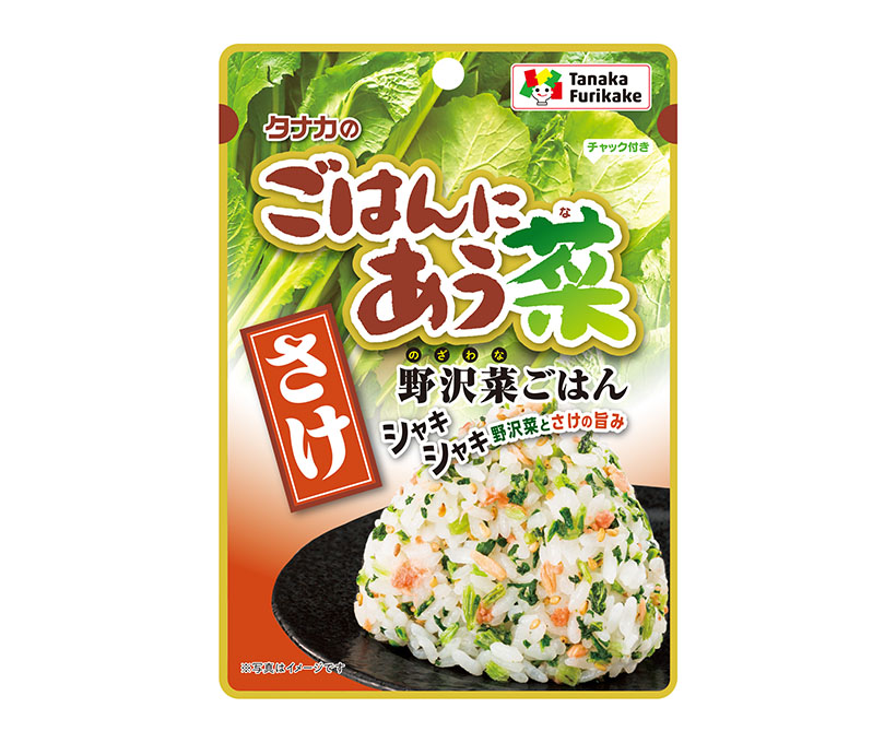 同シリーズは、シャキシャキ食感の「野沢菜」をベースに、「ごま・さけ・梅しそ」をバランス良く合わせたふりかけシリーズ。「節約志向」と「オフィス回帰」で高まる弁当・おむすび需要に対応し、一品で満足感のあるふりかけとして開発された。