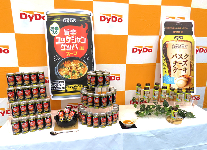 ダイドードリンコは、秋冬向けに缶入りのスープ・デザート製品を販売し若年層獲得に取り組む。「旨辛ユッケジャンクッパ風スープ」を6日から発売するほか、振って飲めるスイーツとして「バスクチーズケーキ」を9月8日から展開。20~30代を対象に話題を喚起し、同社の自動販売機利用につなげていく。