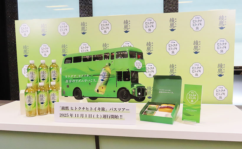コカ・コーラシステムは緑茶ブランド「綾鷹」を起点にブランドメッセージ「ヒトクチ、ヒトイキ。自分のリズムでいこう。」を体験できる秋キャンペーンを10月6日から実施している。その一環として特別イベント「綾鷹 ヒトクチヒトイキ旅」を10月30日から開催。11月1日から東京都の表参道・赤坂・外苑地域を巡るバスツアーを期間限定で行う。人気VTuber「儒烏風亭(じゅうふうてい)らでん」を車内案内役に季節を感じる3種類のオリジナル和菓子と「綾鷹」を楽しめる。